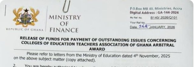 This week, a glimmer of hope finally emerged. An official document from the Ministry of Finance confirmed the release of over GH₵43 million to settle outstanding claims owed to CETAG members. The funds cover unpaid compensation for extra duties, book and research allowances, and delayed top-ups dating back several academic years. On paper, it is a major breakthrough for CETAG and colleges of Education students who have faced unexpected resumption date extended to 9th February 2026.
