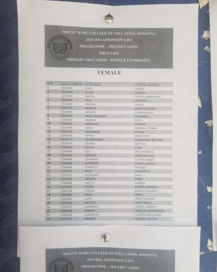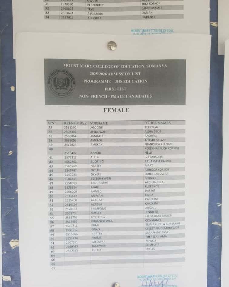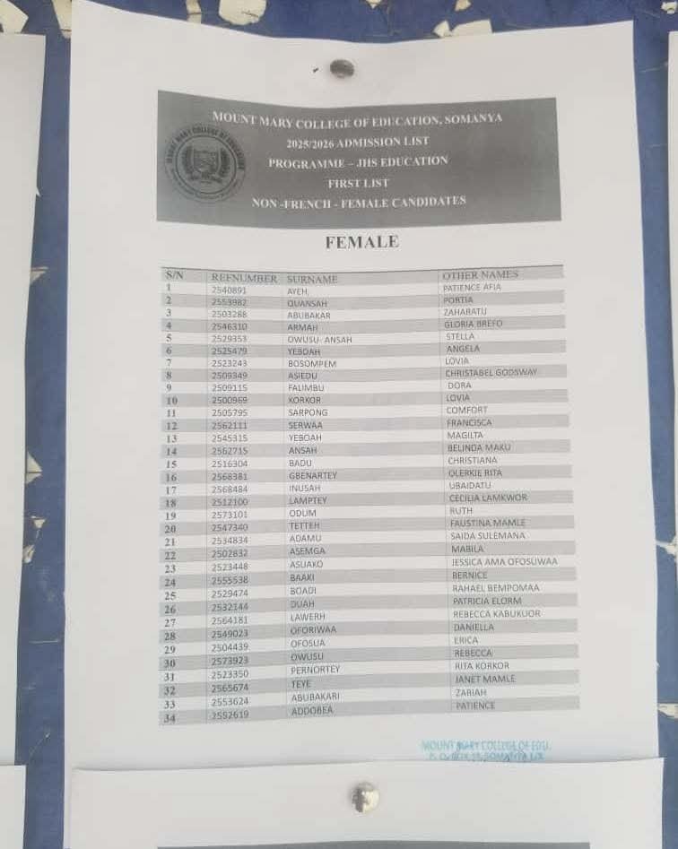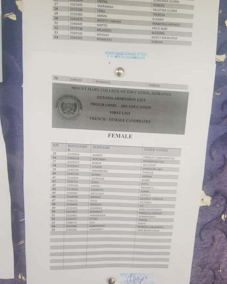 MOUNT MARY COLLEGE OF EDUCATION 2025/2026 ADMISSION LIST