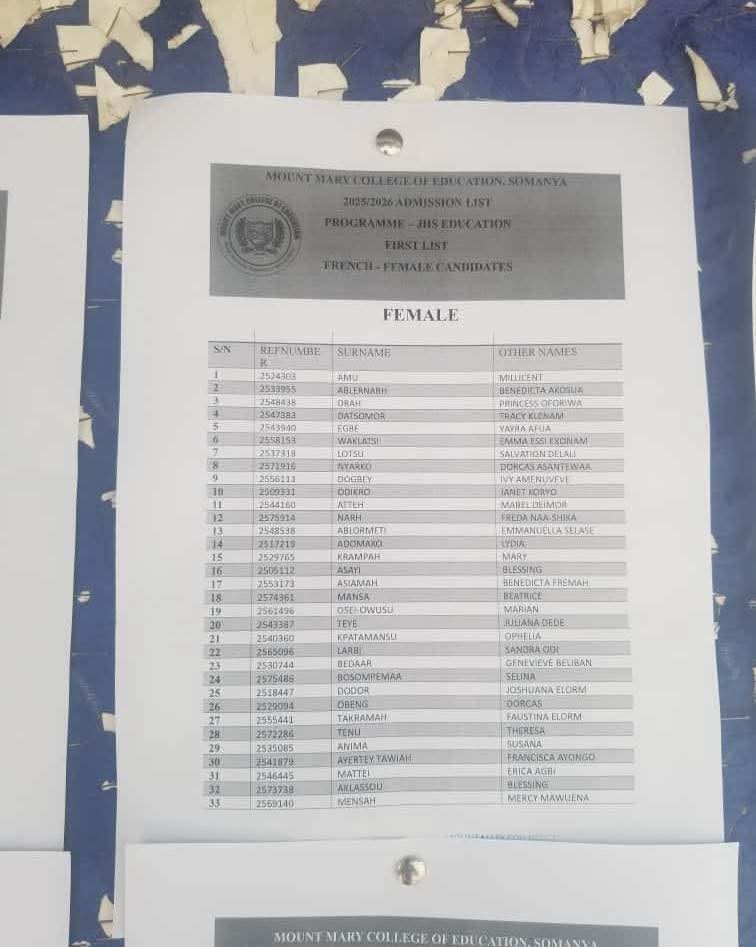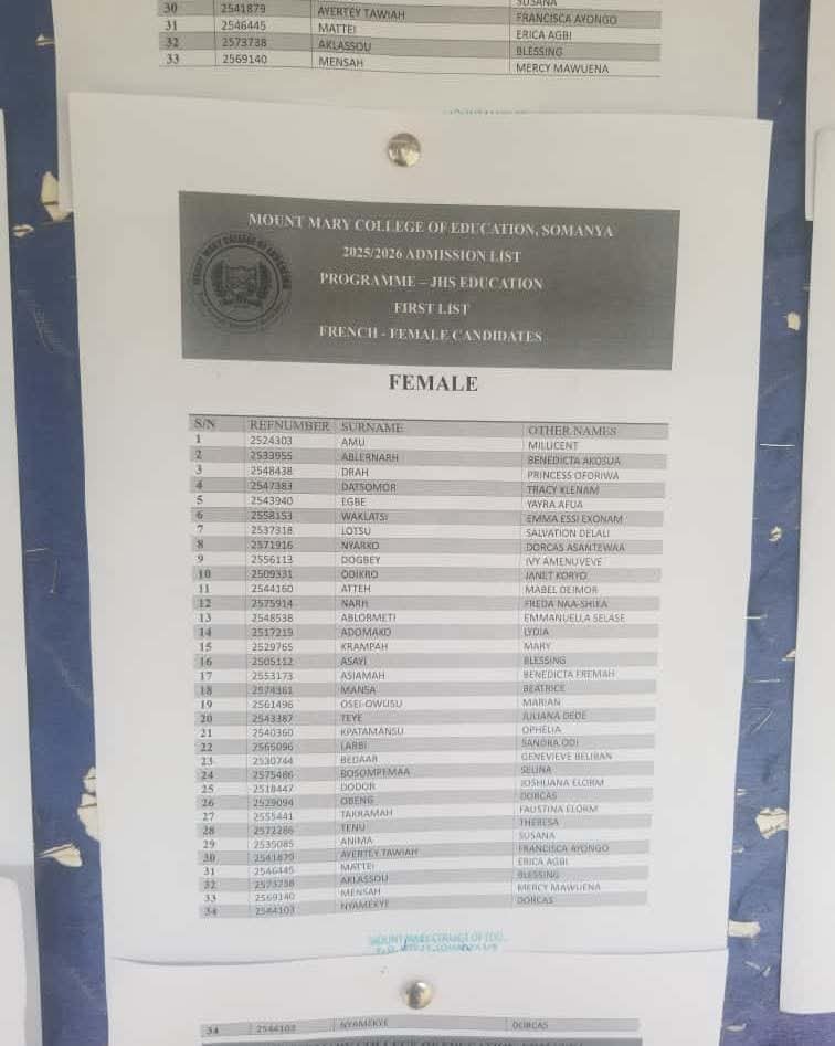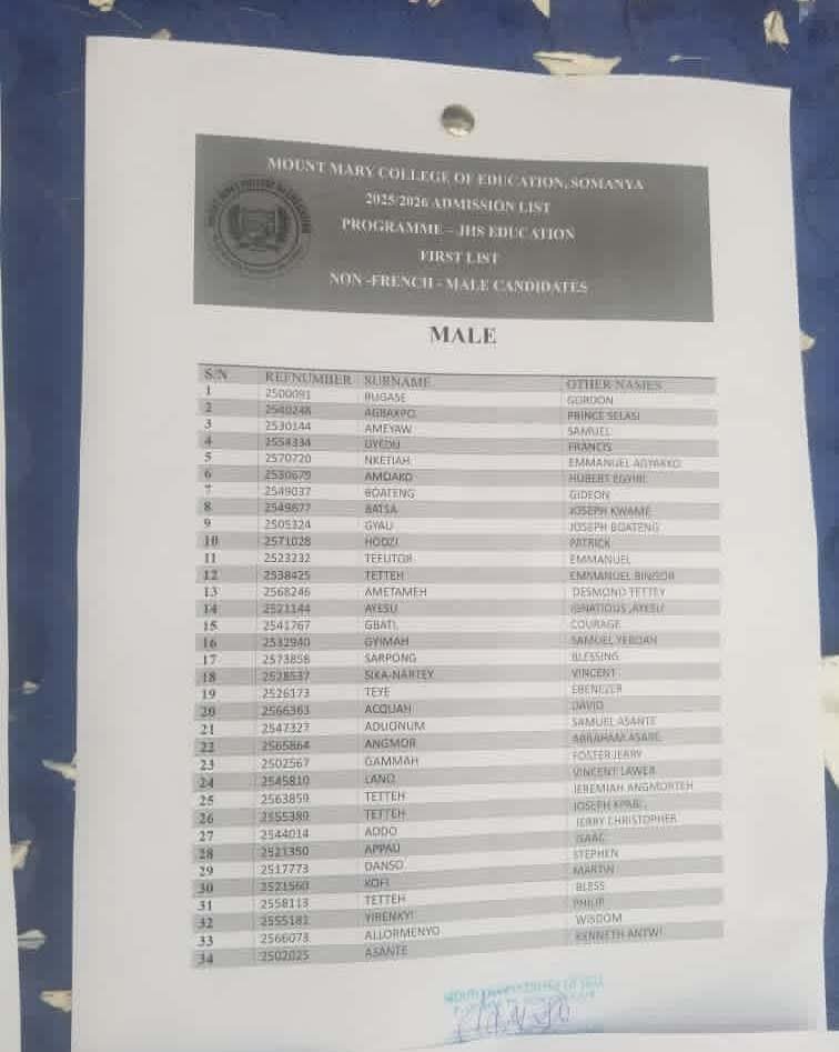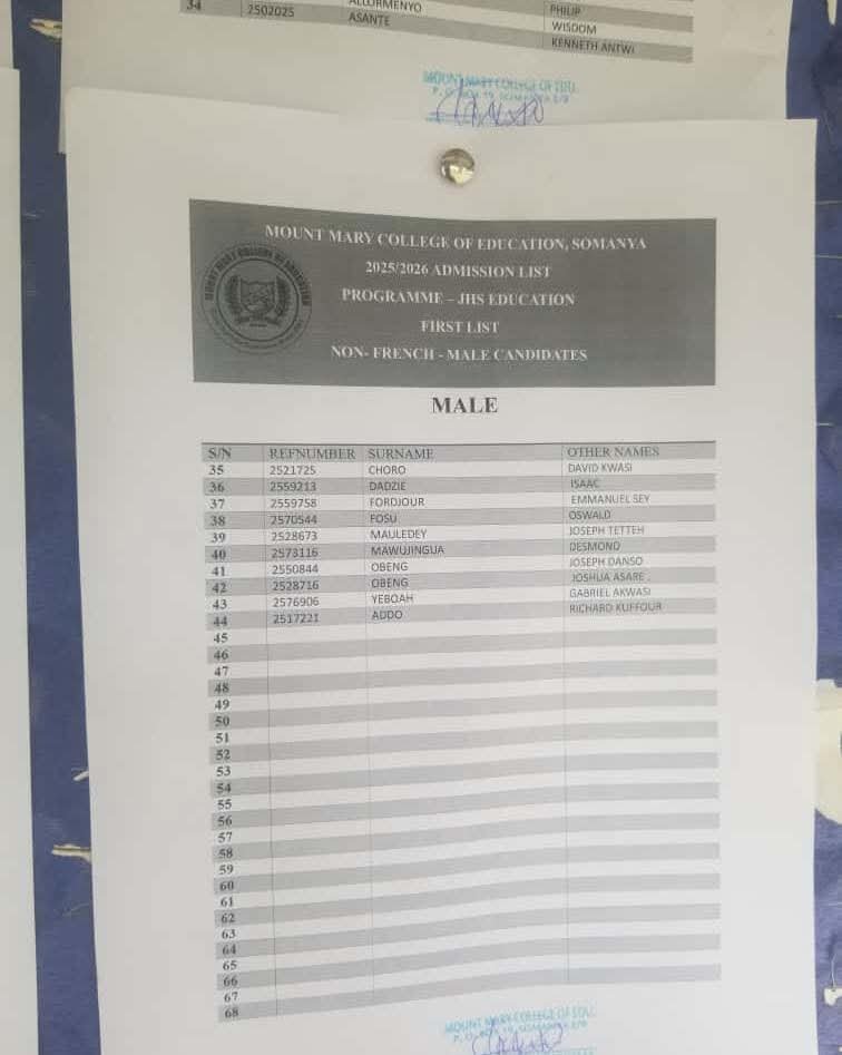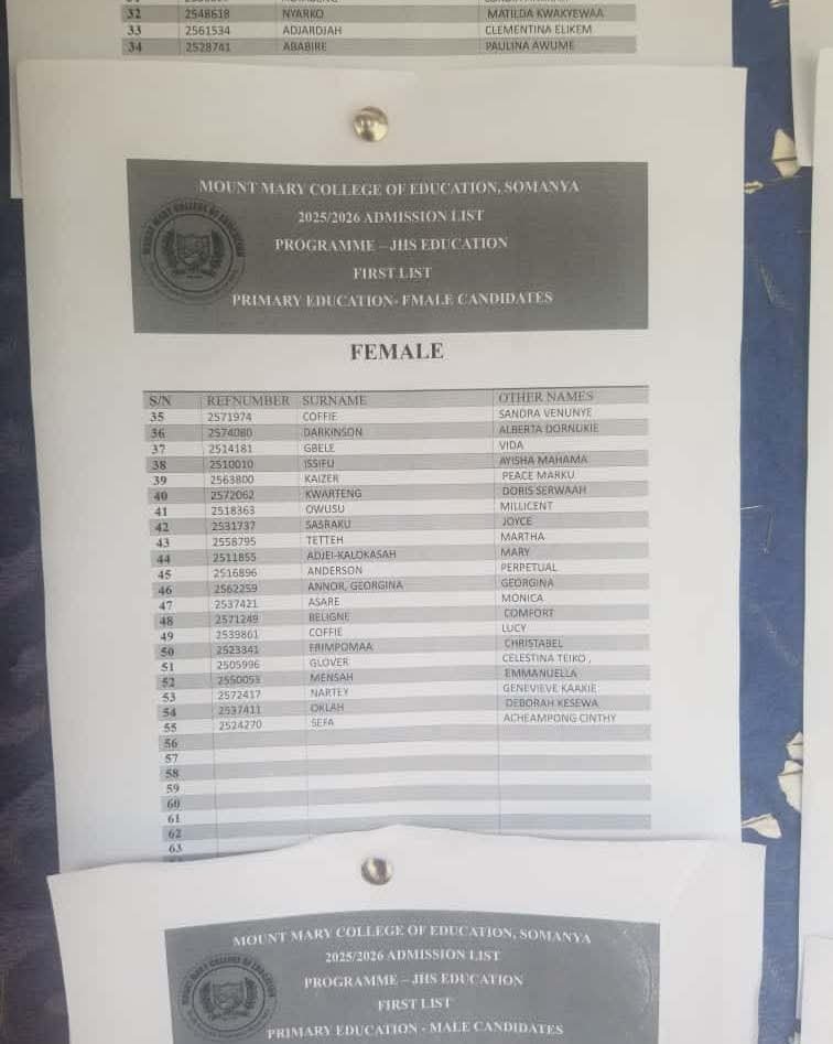 MOUNT MARY COLLEGE OF EDUCATION 2025/2026 ADMISSION LIST
