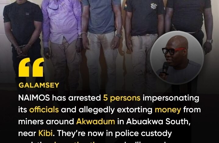 A press release issued by the Public Affairs Unit of the Eastern South Region, signed by DSP David Fianko Okyere, has confirmed the arrest of five individuals for allegedly impersonating security officers to extort money from miners.